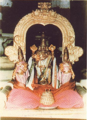 | This temple is one of the navarathnam temple representing Vaidhya Rathnam. This is the most important Divya Desa in the Thondai Mandalam region. The sacred spring in the temple is considered more sacred than holy Ganga and a dip cleanses the devotee of even thinking of a sin. Six pujas, as per rules are performed in the temple at fixed times each day. The temple has a mention in Markandeya Purana. Abishek to Lord is performed only with perfumed oil. Lord is in a reclining form – on a five feet peeta, 15 feet long. There are shrines for Lord Lakshmi Narasimha, Chakkarathazhwar. This is an ancient temple built during the period of Pallavas. Devotees offer Papli Tupatti – an upper cloth to Perumal. This is not available in shops. This is sold in the temple office only priced at Rs. 300. Devotees also offer discs embossed with some figures as eye, full figure, house etc. They offer special archanas and aradhanas and distribute nivedhanas to visitors. Devotees also offer 9 yard length silk sari to Mother. For removal of pimples in faces, they dissolve milk and jaggery in the temple tank and put salt and pepper in the mandap. Lord Veera Raghava Perumal is all merciful a physician. Any sick person praying here continuously on three new moon days is cured of diseases as stomach pain, defects in hands and legs and fever. Devotees also pray for child boon and happy wedding and reliefs from any untold hardship and suffering |