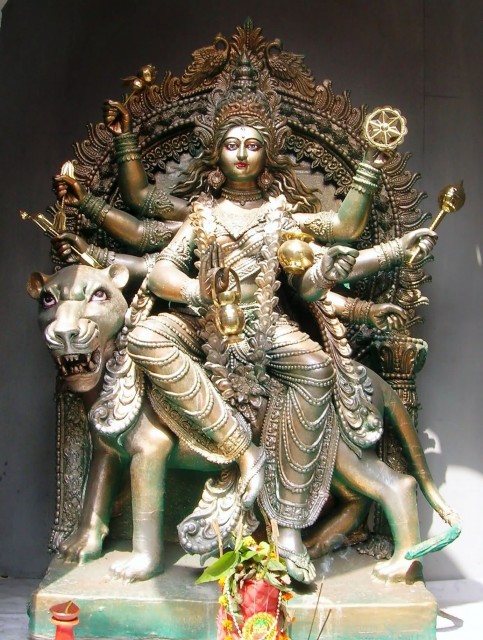 Goddess's vehicle is a tiger, they ride tigers. |