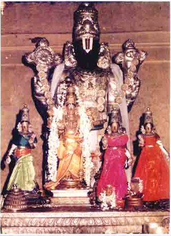 Mother Bhoodevi’s father was Sage Markandeya. He has his place in the sanctum right of Lord. He attained salvation in this place. When the sage came to know that Lord Perumal loved his daughter, he told the Lord that she was a little girl and did not know even how much salt to be added to food. Perumal said that she can cook without salt at all and that He would accept it and married Mother Bhoodevi. Thus Perumal came to be known as Uppiliappan-Lord accepting food without salt. King Azhagia Manavala Naicken was sending stones for the renovation of Mannargudi Sri Rajagopalaswami temple. The carts carrying the stones were routed through this place as per instructions of the king. Other Perumal devotee Narasabhupalan took one stone from each cart for the renovation of this temple. When the king came to know of this, he came here for enquiry. When the devotee prayed to Perumal, He granted darshan to the king as Lord Rajagopalaswami. Excited king executed renovations for this temple too. According to scriptures, during the Pralaya the devasting floods, Lord Brahmma took the soil of this place, made a pot and placed the Vedas in for safety. Mother Cauvery begged Perumal that she too may granted the status of Holy Ganga considered superior in washing off the sins of those bathing in the river. She performed penance for the boon under the Bodhi tree on the western bank of Sara Pushkarini. Pleased with her penance, Perumal crawled on the lap of Cauvery as a little child. Cauvery said that she was not for that boon alone. Perumal appeared before her with His five consorts. Cauvery begged Perumal that He should stay in the place in the same form. Obliging Cauvery, Perumal also granted a space to her in the Sanctum Sanctorum to His left, which devotees can see even now. |
