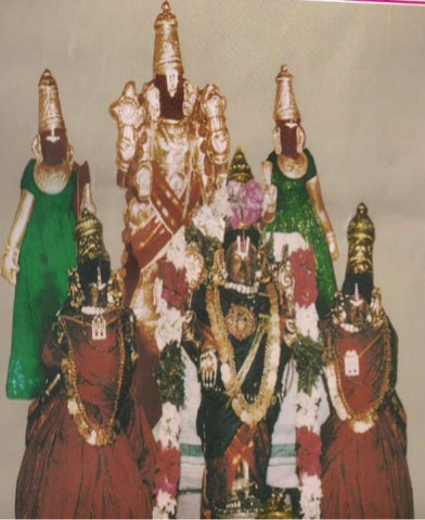 The temple has a three tiered Rajagopuram and all its shrines are enclosed in a rectangular granite wall. The temple tank is located opposite to the gateway tower. The temple complex has a single prakaram (closed precincts of a temple) and separate shrines for Perumal, Manavala Mamunigal, Nachiar and Nammalvar. Kumudhavalli Nachiar, the wife of Thirumangai Alvar was found here and she has a separate shrine. It is located close to Thirunangur, a small village, 8 km east of Sirkali en route to Thiruvenkadu. The temple is also referred as Then Tirupathi (Southern Tirupathi) and has same structure as Tirupathi temple. Lord Perumal is facing east in a standing form. The Vimana above the sanctum sanctorum is known as Tatvat Yodhaga Vimana. The Temple is managed by Tamilnadu Government's HR&CE ministry. Battachariar (Priest) and Parcharaka of the temple are appointed by government. |