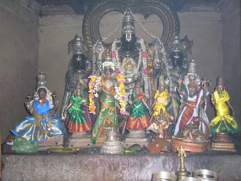 The temple complex has a single prakaram (closed precincts of a temple) and separate shrines for Tamaraiyan Kelvan Perumal facing west, Shenbagavalli Thayar facing east. The vimana of the temple is called Narayana Vimanam and water body associated with the temple is called Katka Theertham. The festival images of Tamaraiyan Kalvan, Krishna and Rama, are stored in the shrine of Tamaraiyan Kelvan. This is the only temple where the images of Rama and Krishna are housed in the same shrine. The main gateway tower, the Rajagopuram faces west and the temple is surrounded by walls. The temple tank is located in the southern side outside the temple complex. There is a separate hall in the temple complex that houses the chariot and festival chariots. The festival deity has four consorts namely, Sridevi, Bhudevi, Neeladevi and Jambavathy. Following the legend of sage Agasthiyar, a separate shrine of Agasthiyar was built during the consecration of the temple in May 2015. The Moolavar is Thamaraiyaal Kelvan also called Parthasarathy, Lakshmi Rangar in a standing posture facing east with the Thayar Thamarai Nayaki. There is an Utsava Moorthi of Ramar called Kolavalli Raman with Sankhu, Chakra, Ghadhai, bow and arrow. Theertham of this temple are Sankara Saras Pushkarani, Ganga theertham. As the Ekadasa Rudhiran got Dharsan here, the Pushkarani is known as Shankara Saras where Shankara means Lord Shiva and as an honour to Ganges which is in the top of Lord Shiva’s head, it is also known as Ganga Theertham. |