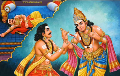 In Tiruperumangalam in Ponni Nadu, there was a Vellala by name Eyarkon Kalikama Nayanar. He belonged to the family called ‘Eyarkudi’ which produced Commanders-in-Chief to Chola kings. He was a great devotee of Lord Siva. The news that Sundaramurthi Nayanar had used Lord Siva Himself as a messenger to settle the domestic dispute between him and his wife Paravayar, so greatly annoyed devout Kalikamanar that he said to himself: ‘Is this man who behaved like this a devotee? I am a great sinner, too, otherwise my life-breath would have departed on hearing the news.’ Sundarar came to know of Kalikamar’s attitude. He realised his own fault and entreated the Lord to appease Kalikamar’s anger. The Lord caused Kalikamar to suffer from colic and told him in a dream that only Sundarar could cure it. Kalikamar preferred death to being cured by Sundarar! In the meantime, the Lord appeared in Sundarar’s dream and asked him to go to Kalikamar and cure him of the colic. Sundarar at once went to meet Kalikamar. As soon as he heard that Sundarar was coming to cure him, Kalikamar gave up his life by cutting his bowel open. Sundarar was greeted by Kalikamar’s wife. When he asked for Nayanar, she made her people say that there was nothing wrong with him and that he was asleep. After much persuasion, they showed him the Nayanar’s body. In desperation, Sundarar also wanted to cut his throat. By the grace of Lord Siva, Kalikamar at once came back to life. They embraced each other. Kalikamar spent the rest of his life in the service of the Lord and His devotees and finally reached His Abode. |