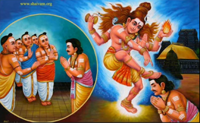 This saint was a chieftain of Kalandai. He was extremely devoted to Lord Siva. Daily he would repeat the Panchakshara Mantra, and serve the Bhaktas. The Lord made him more powerful, and bestowed on him all wealth and strength. Nayanar captured many places in the Chola and Pandyan kingdoms. He wanted that the three thousand Brahmins of Tillai should crown him king: they refused, because they owed allegiance to the Chola king. All of them even left Tillai fearing his wrath. Only one was left to do the Puja. Even he refused to accede to Nayanar’s request. One day Nayanar prayed to the Lord: and, in answer, the Lord Himself appeared before him and crowned him by placing His Feet on his head. Nayanar continued to worship the Lord and finally attained Him. The Lord, the Indweller of our hearts knew that, when the Nayanar asked the three thousand Brahmins to crown him, it was only to spiritualise the coronation and to enable him to feel that the crown was but a symbol of the Feet of the Lord. When the Brahmins feared political repercussions, the Lord Himself fulfilled the devotee’s wish |