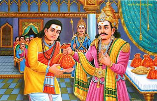 This saint was a petty chieftain. He lived in Tiru Munaipadi. He was highly devoted to Lord Siva. He was a champion of Saivism. On every Tiruvathirai day he would conduct special Puja, feed Siva Bhaktas in whatever form they appeared and offer the gift of a hundred gold coins to each. On one such occasion, one Bhakta came with sacred ashes on his stark naked body: this evoked disgust in the hearts of the other Bhaktas. Nayanar understood this and fell at the naked devotee’s feet and welcomed him with more respect. He fed him nicely and gave him 200 gold coins. This earned the Lord’s supreme grace for the Nayanar. Here is an illustration of the subtle way in which saints manifest their cosmic vision, and also the subtle way in which they bring about the necessary change in the outlook of others. To the Nayanar, all the devotees are the manifestations of Lord Siva. The naked man does not evoke the least trace of disgust or contempt. When he finds this unhealthy attitude in others, he does not violently correct them. In his own subtle, mysterious but very effective way, he demonstrates the truth: and brings about a change in the attitude of the ignorant. Both these lessons are important. |