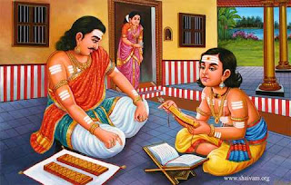 In Tirunavalur in Tirumuraipadi there lived an Adi Saivite by name Sadayanar. All his ancestors were ardent devotees of Lord Siva. He was also pious and devoted. Isaijnaniyar was his dutiful wife. She was also devoted to the Lord. Due to their virtuous deeds in their past life, a divine child was born to them. He was no other than Sundaramurthi Nayanar. Narasinga Munaiyar, the king, was attracted by the child’s beauty and wanted to bring it up himself. The king approached the parents and they, without a moment’s hesitation, handed the child over to him. By this action, they showed that they had no attachment at all to anything in this world. They led the ideal Grihastha (household) life and finally attained His grace. Worldly attachment is the only chain with which man binds himself to this Samsara. When there is attachment, there is Samsara or bondage: if you are completely detached, you are at once freed, you become a Jivanmukta. You enjoy the Bliss of Brahman here and now, this very moment. This is the unique glory of Hinduism: it promises immediate Liberation here in this world, while yet embodied! Immediately the entire world is transformed into a manifestation of Divine Light. All the paradoxes and mysteries of Creation are understood. |